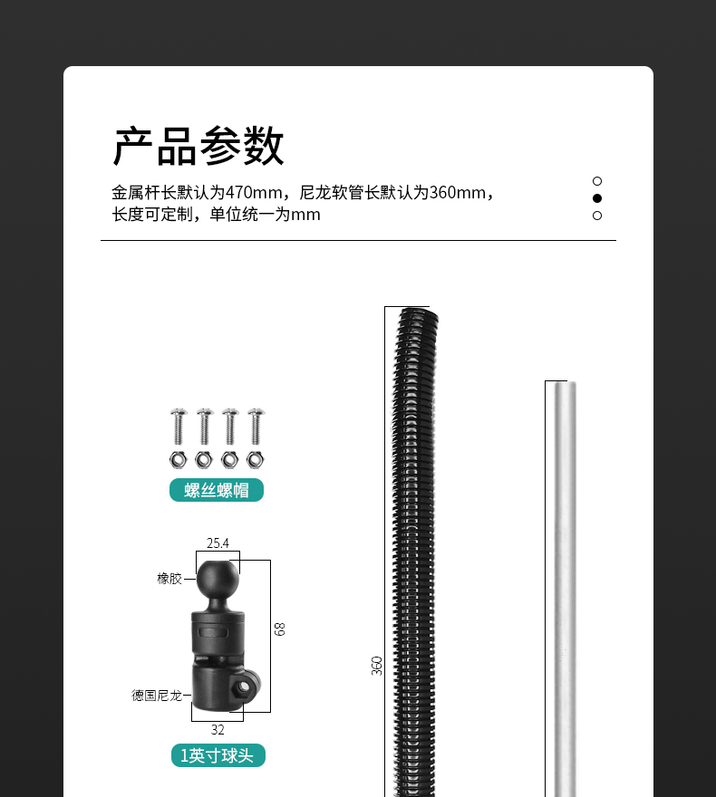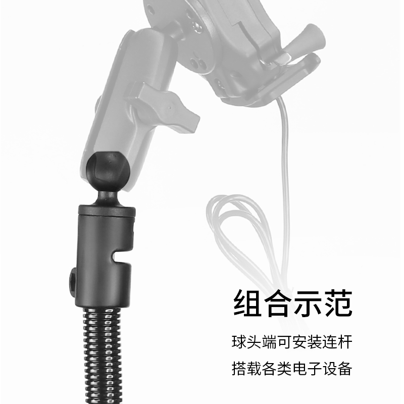 车载设备圆管夹蛇形软管支架1英寸球头任意弯曲铝管平板支架